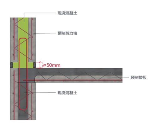 疊合墻的上下墻之間墻間距不小于 50mm。